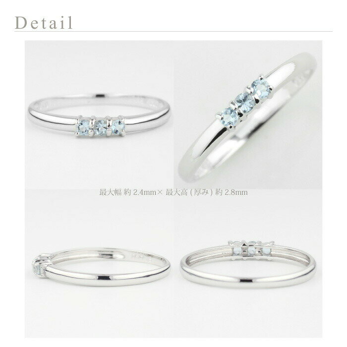 地金素材 プラチナ900 使用宝石 誕生石(13種)/3石 大きさ リング:最大幅 約2.4mm×最大高(厚み) 約2.8mm 刻印 金種 リング サイズ 1号〜14号(その他のサイズは別途サイズ直しチケット⇒をお買い求めください。