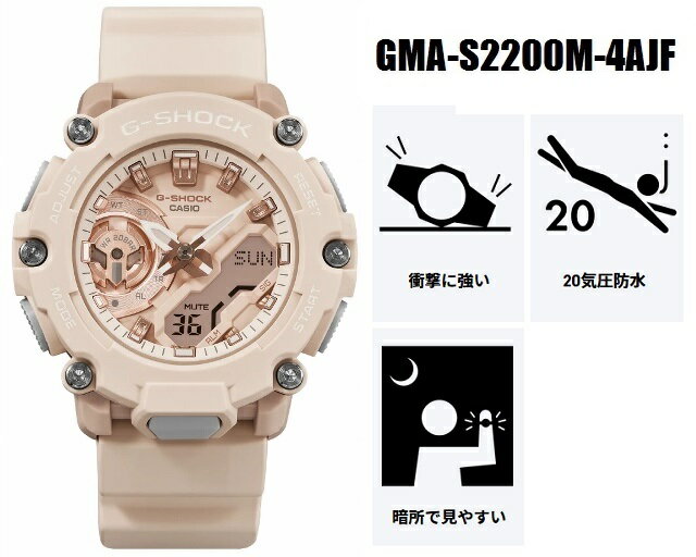 '22-4 正規新品 小型/薄型 ラウンド/丸型フェイス CASIO G-SHOCK/ジーショック ミッドサイズ クオーツ アナログデジタル メンズ レディース ジェンダーレス カーボンコアガード ワールドタイム メタルアクセント ピンク GMA-S2200M-4AJF