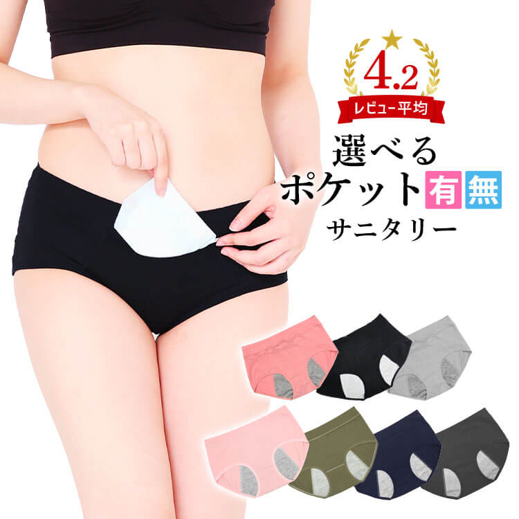 \限定タイムSALE/ 3枚組 サニタリーショーツ レディースインナー ポケット付き ポケット無し が選べる 防水布付き 生理用 パンツ ジュニア 夜用 下着 ポケット 予備 ナプキン カイロ が入る 楽天ランキング1位 フェムテック フェムケア