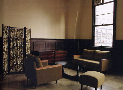 肘掛けのウッドのデザインが楽しいコバソファ。