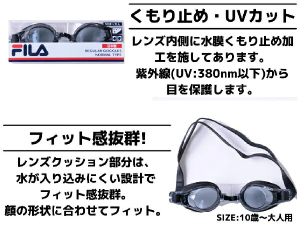【カテゴリ】フィラ スポーツ スイミング スイム プール 水泳 海 海水浴 ゴーグル【品番】308208-BK【素材】レンズ:ポリカーボネートフェイスパッド/ストラップ/鼻ベルト:エラストマー【サイズ】メーカー推奨年齢:10歳〜大人用【仕様】日本製・カラー詳細BK/ブラック黒系/ブラック系/black系【商品詳細情報】レギュラーノーマルゴーグル。