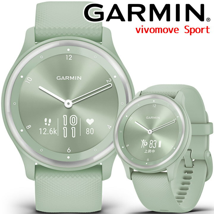 【取説★印刷サービス】 スマートウォッチ ガーミン GARMIN vivomove Sport Silver/Cool Mint (010-02566-43) 血中酸素 通知機能 生理・妊娠管理 水分管理 睡眠計 心拍計 タッチスクリーン 天気 ダイエット ウォーキング ヨガ ピラティス