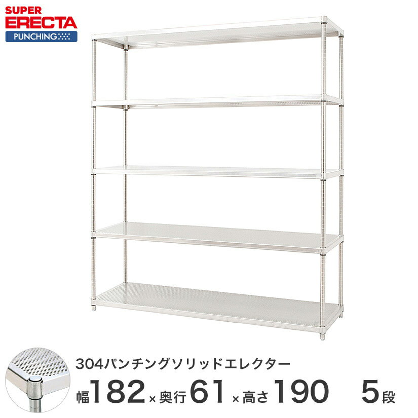 【送料無料】 【受注生産】 エレクター ERECTA パンチングソリッド W1821xD613xH1892mm PSポール DB付 5段 supererecta スチールラック