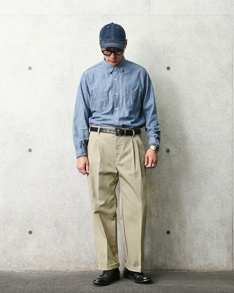 その後、企業名を変更し、新たにワークパンツとトップスのセットアップやシャンブレーシャツなどの取り扱い、ラインナップを多様化させていきます。