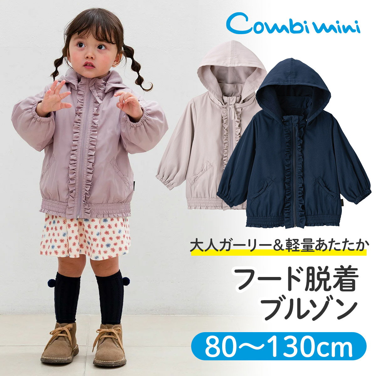 【10%OFF】《コンビミニ》フード脱着ブルゾン : 女の子 80cm 90cm 100cm 110cm 120cm 130cm | 赤ちゃん 服 ベビー服 ウェア 子ども服 こども服 冬服 可愛い 姉妹 お揃い おしゃれ キッズ 保育園 アウター 秋冬 パーカー 防寒 上着 ジャケット